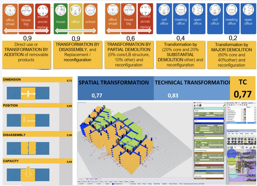 Assess the effort required to transform the functional and physical characteristics of a building or its parts to meet changing needs and requirements without demolition.